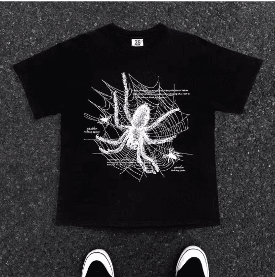 Kaos American Retro Style T-shirt Motif Laba Laba menurun jaring Print