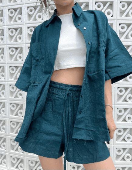 Peach Poppy GINNA Premium Linen One Set Celana Pendek - Setelan Wanita