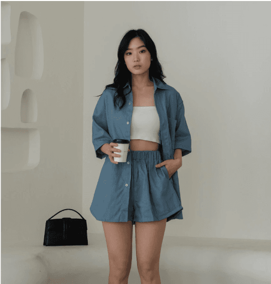 Denim Set (Shirt & Short) Denim Shirt Set (Kemeja + Celana) Setelan Wanita